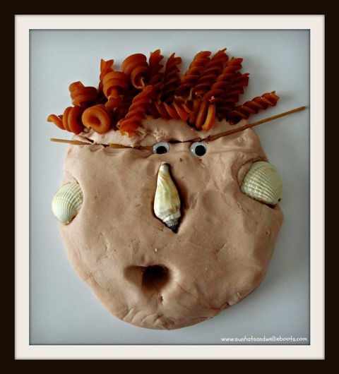 Modelez des visages (humains ou animaux) sur des supports plats, avec trous pour les yeux. À peindre pour en faire de vrais masques.