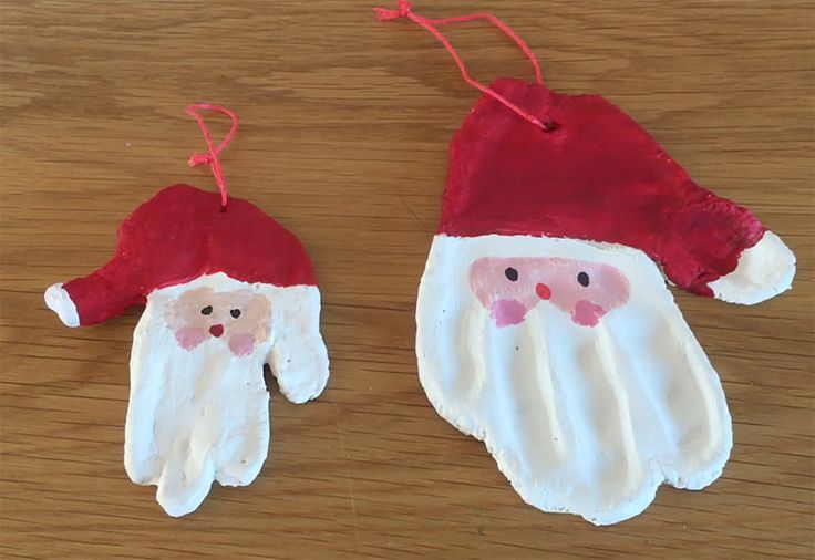 Utilisez la main de votre enfant pour créer un adorable Père Noël en pâte à sel. Ajoutez un petit pompon pour son bonnet ! Découvrez aussi comment réaliser de jolies décoration de Noël avec de la pâte autodurcissante.