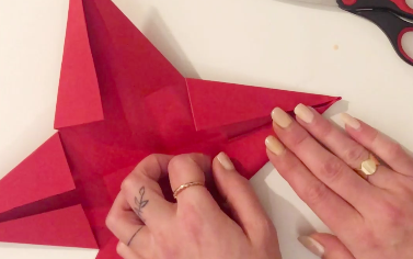 3. Pliez chaque angle pour obtenir quatre pointes d’étoile puis collez les pour que les branches des étoiles tiennent.
