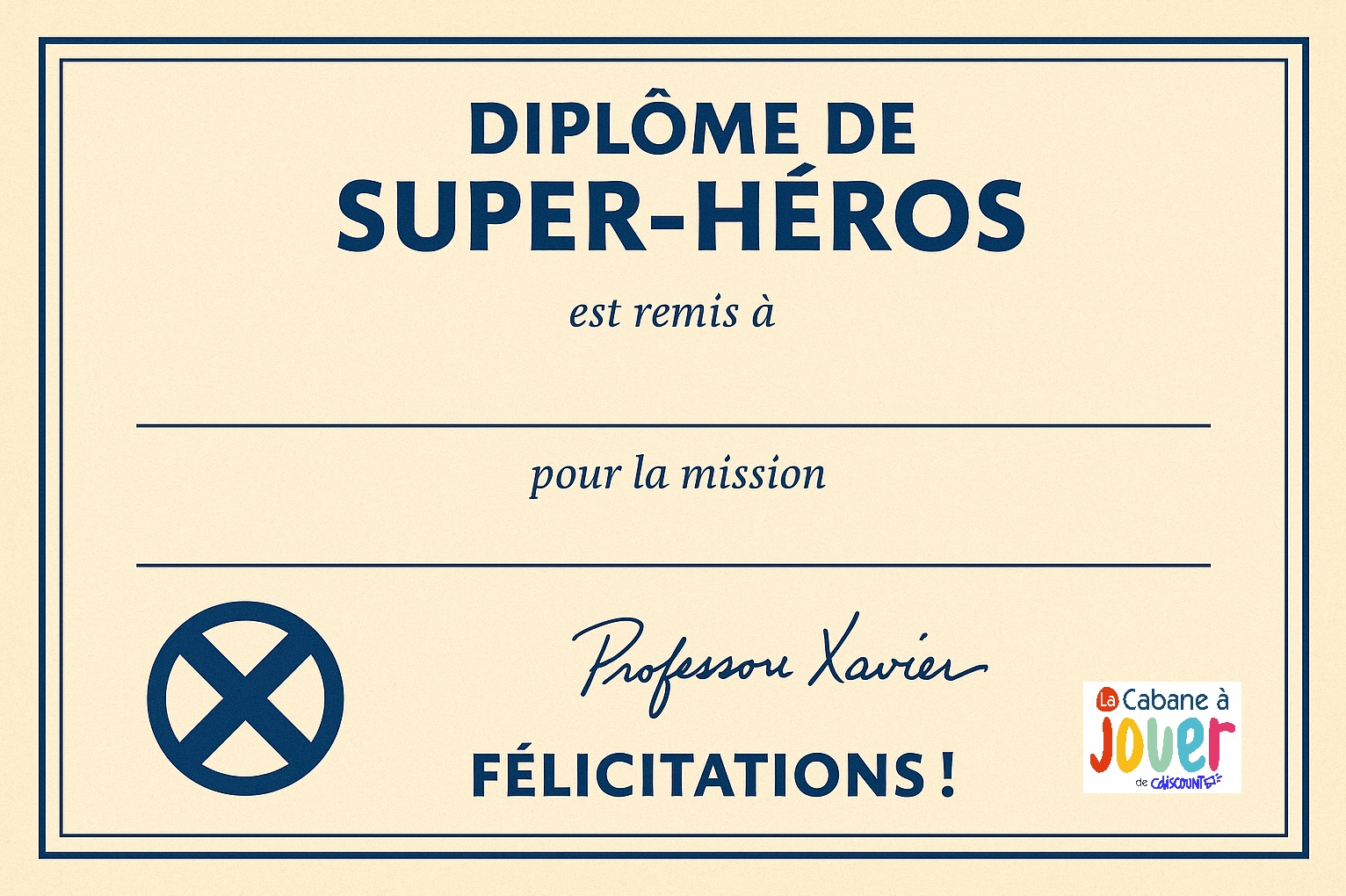 Remettez à chaque enfant un diplôme de “X-Men certifié” avec :
