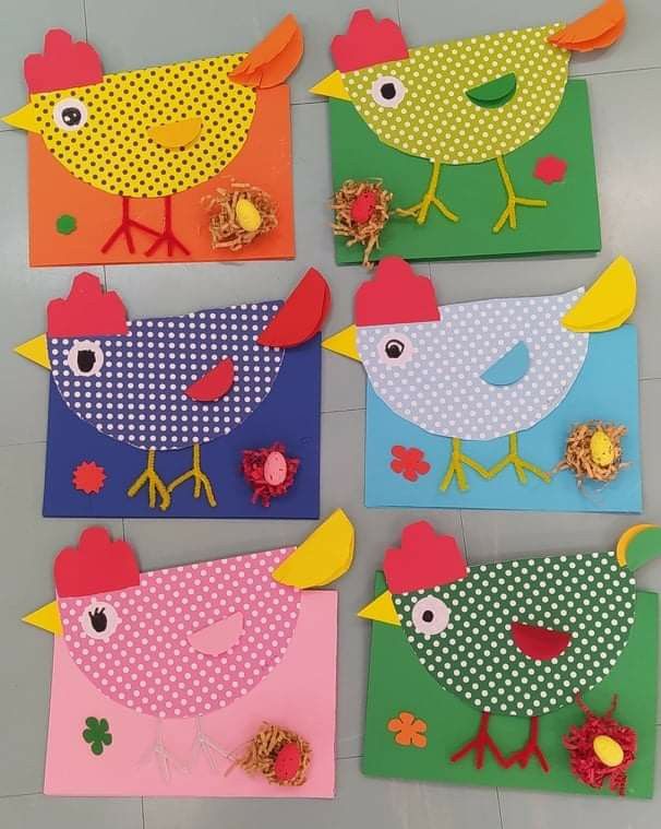 Notre astuce : accompagnez votre carte de nos autres bricolages de poules de Pâques !