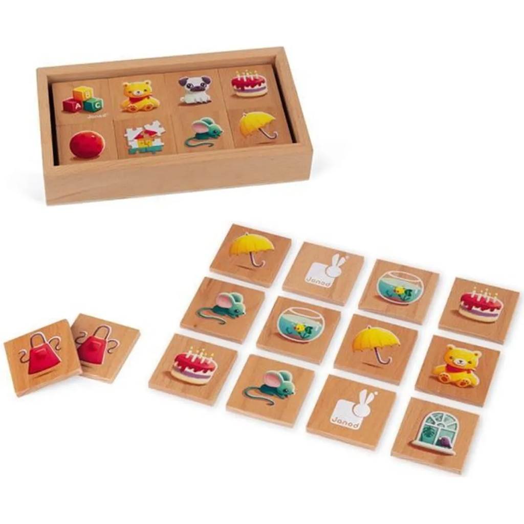 Mélange de hasard et de déduction, les règles du memory sont simples : retourner une carte après l’autre pour retrouver sa paire identique. Le jeu se termine une fois que toutes les paires ont été trouvées. Aujourd’hui, il existe de plus en plus de variantes du jeu de mémory puisqu’il s’adapte à la première année de l’enfant et évolue en même temps que son apprentissage. Il en existe même en ligne. Inventé en 1959, le memory est reconnu pour améliorer la mémoire visuelle de l’enfant, sa concentration et son raisonnement.