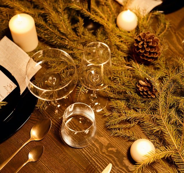 De simples bocaux en verre récupérés, une feuille de papier à dessin de couleur foncée, de la colle, une paire de ciseaux et quelques coups de crayon et voilà de jolis photophores ! La lumière de la bougie vient éclairer le décor et apporte une touche de féerie. Pour un résultat bluffant en quelques minutes, choisissez simplement un joli verre un peu large, remplissez-le aux trois-quarts d’eau, glissez-y des baies de houx et une bougie flottante. Saupoudrez un peu de neige artificielle autour des photophores pour créer un centre de table encore plus féérique. L’ensemble créera une ambiance chaleureuse et lumineuse qui émerveillera petits et grands pendant le repas.