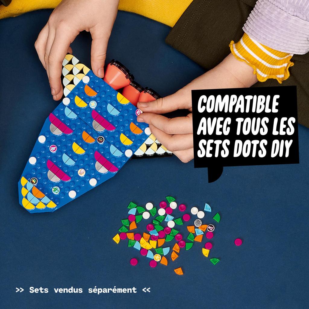 Crée au gré de tes envies avec les Tuiles de décoration DOTS ! Reproduis d’innombrables expressions faciales et émotions avec les tuiles yeux et bouches d’animaux, les briques oreilles et pattes, ainsi que 10 tuiles surprises décorées. Ajoute-les à ton porte-clés, ta boîte à secrets ou tes bracelets LEGO® DOTS pour t’exprimer pleinement et laisser libre cours à ta créativité. Il n’y a pas de bonne ou de mauvaise façon de décorer ta vie ! #décoretonunivers