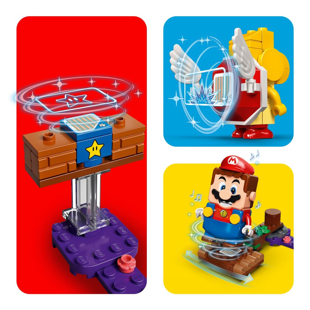 Rencontre un Wiggler dans la Jungle Cassis avec cet Ensemble d’extension débordant d’action à ajouter au Pack de Démarrage LEGO® Super Mario™ ! Remue et frappe le Wiggler pour déplier le pont secret. Attention au Goomba caché sous le pont. Utilise la plateforme coulissante et pagaie pour éviter le marais empoisonné. Gagne d’incroyables pouvoirs avec la brique d’action Super étoile et bats le Paratroopa pour terminer ton parcours épique !